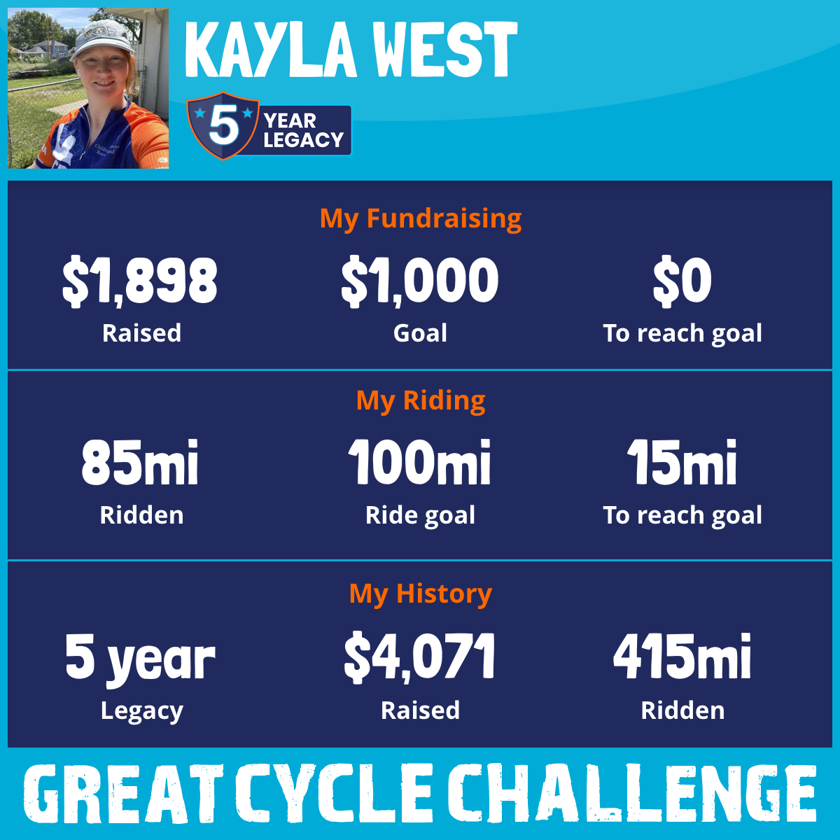 85 mi Ridden$1,898 Raised2025