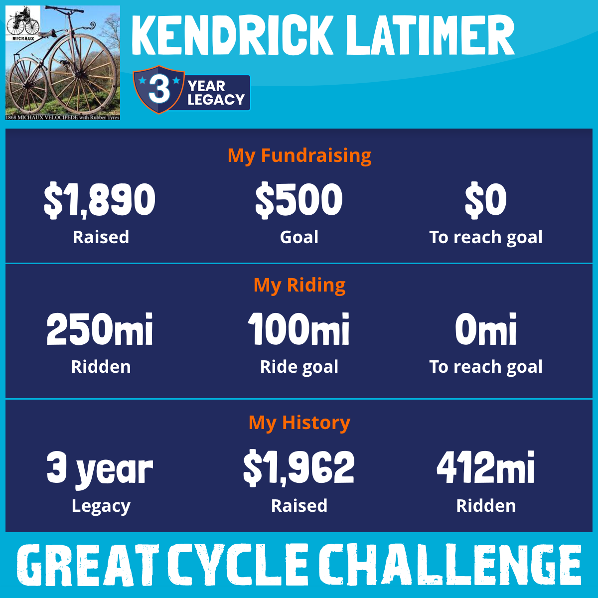 250 mi Ridden$1,890 Raised2026