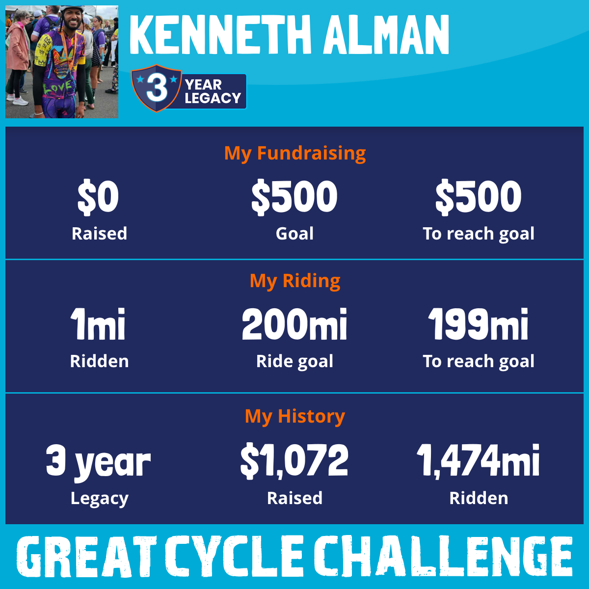 1,285 mi Ridden$1,072 Raised2020