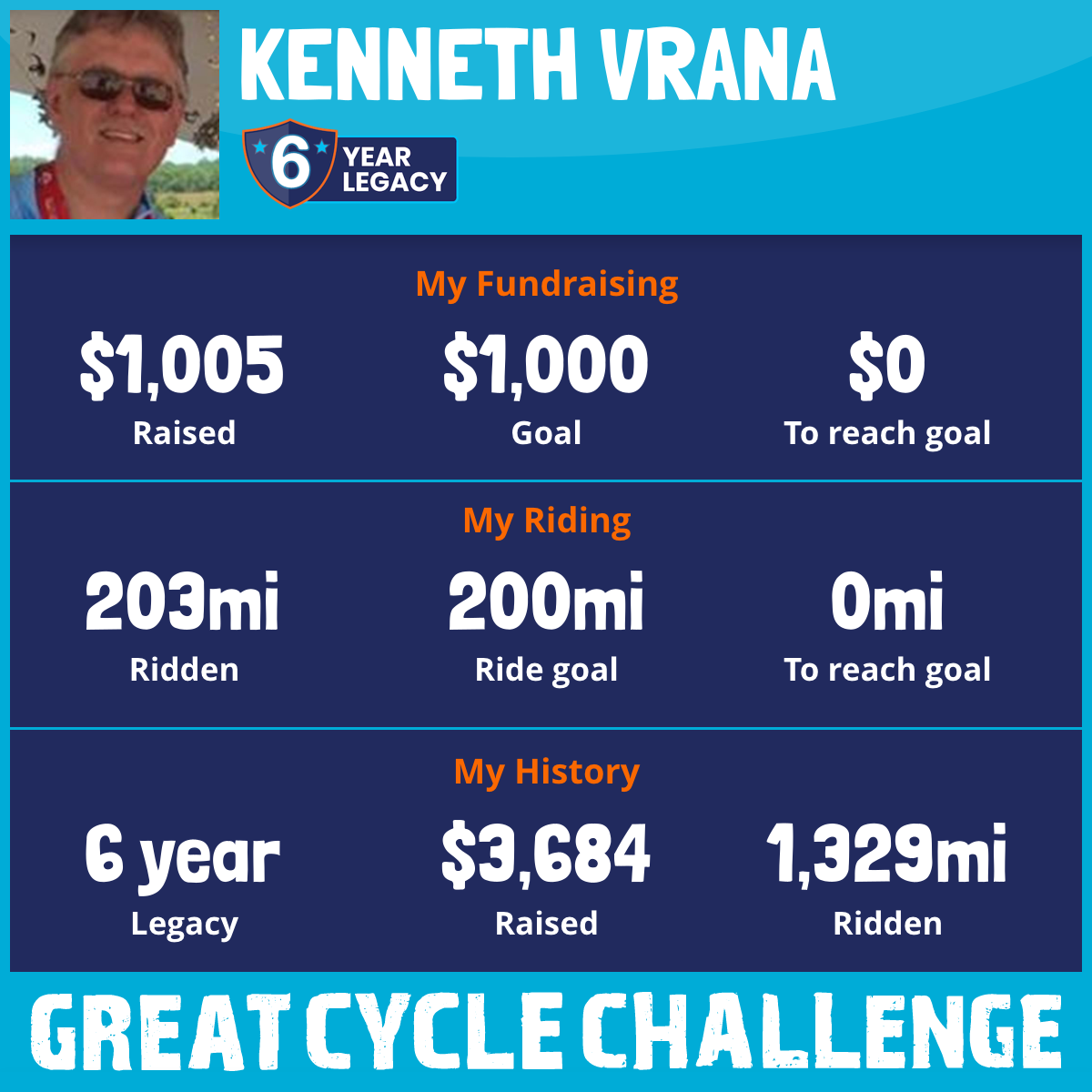 27 Sep 2025With today's ride I have ridden 203 miles in September, achieving my challenge goal of 200 miles. The month is not over, though, so keep those donations coming in so I can meet my NEW goal of $1,000 to fight childhood cancer!