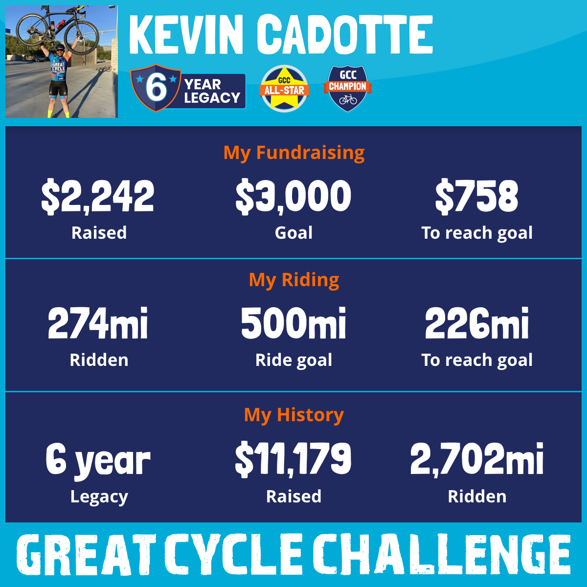 274 mi Ridden$2,242 Raised2025