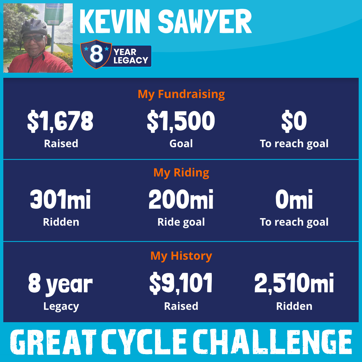 301 mi Ridden$1,678 Raised2025