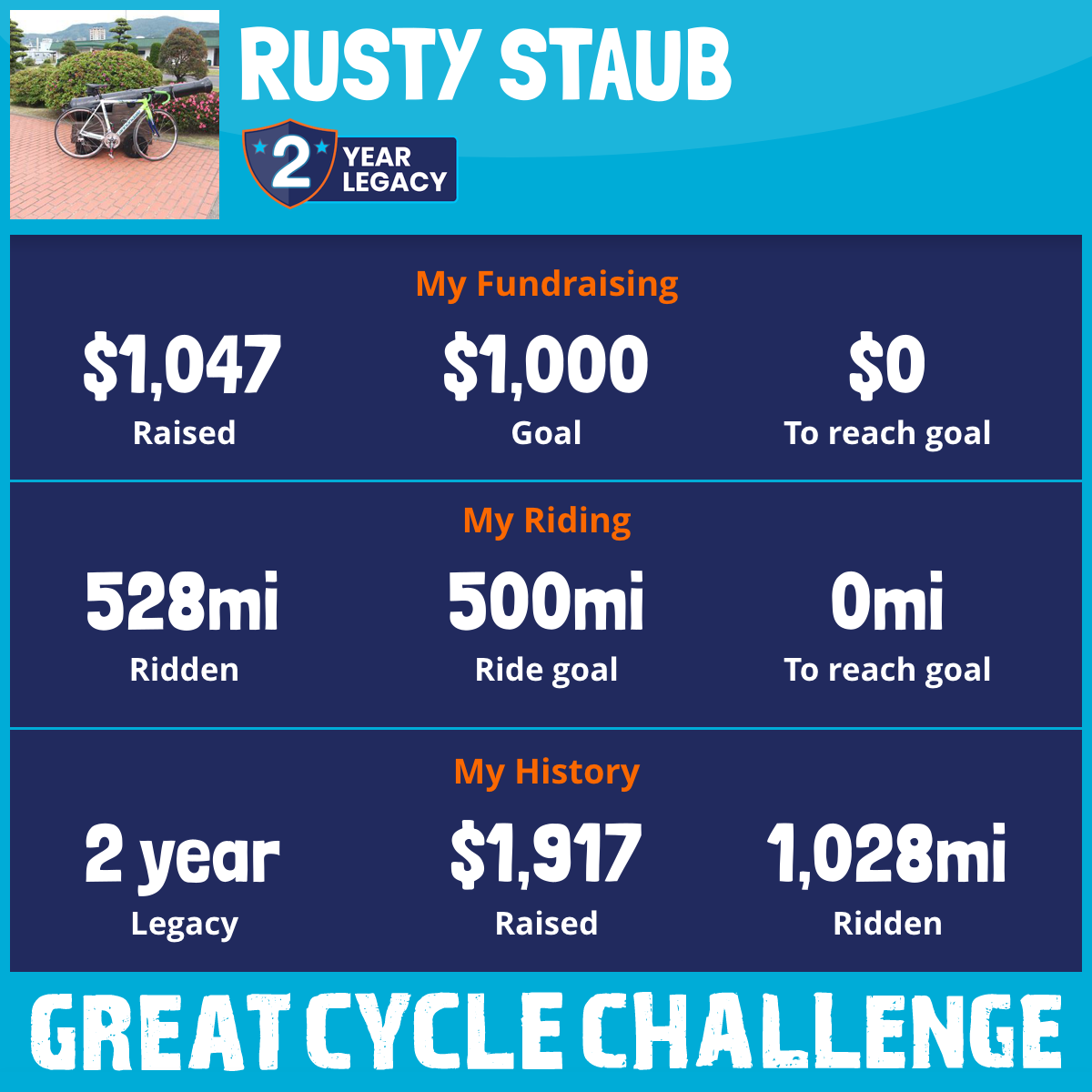 528 mi Ridden$1,047 Raised2025