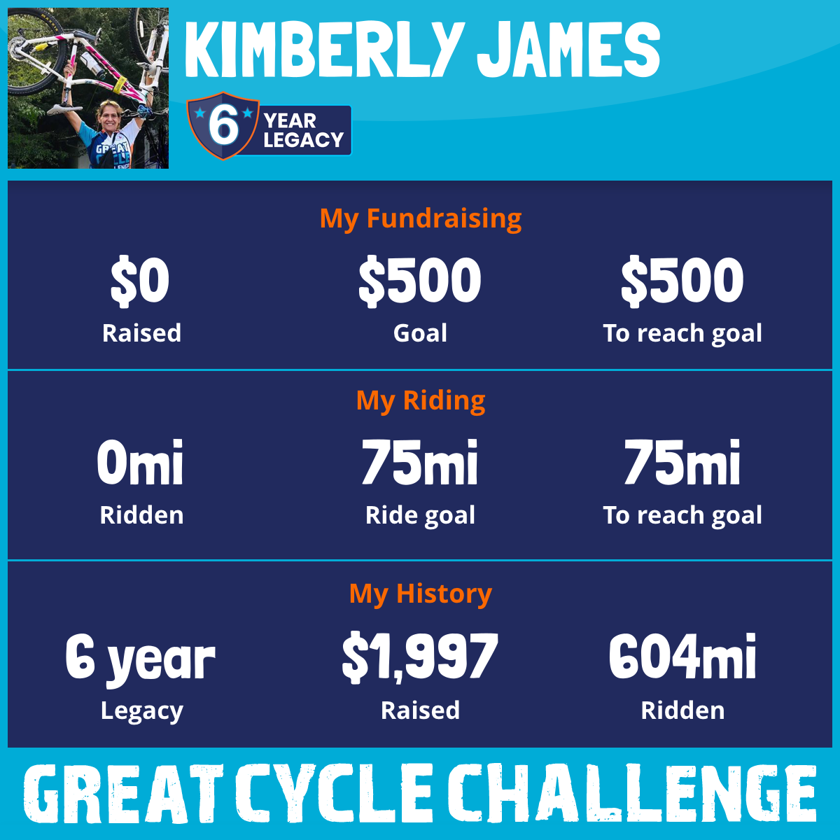 Just Keep Pedaling!!! :) I ride because they can’t right now. Since a kid, playing outside, kick the can at dusk, jumping through sprinklers in summer, Riding bikes and sledding in the winter; yes even school days...was, is and always be something to look forward to doing, as well as FUN & MEMORABLE! Kids should be enjoying life! Not fighting for it!!! Let’s makes this year’s donation jump! Especially since, I myself, kicked cancer and currently cancer free! Yay!!! Please consider making a donation $1 or $500 every cent matters, as does every days‘ fight to end childhood cancer. Soon these Beautiful Gems will be our future leaders. I, myself, just beat Breast Cancer. Yay!!!! It is terrifying to hear that you have cancer. Stay positive, don’t give up, and KEEP PEDALING!!! I am :)