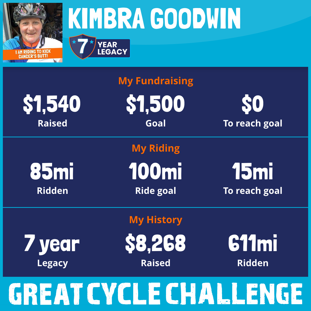I’m also riding a memory of my husband, Greg Goodwin, who passed away a year ago from pancreatic cancer and many friends and family members who have fought or lost the battle with this terrible disease!