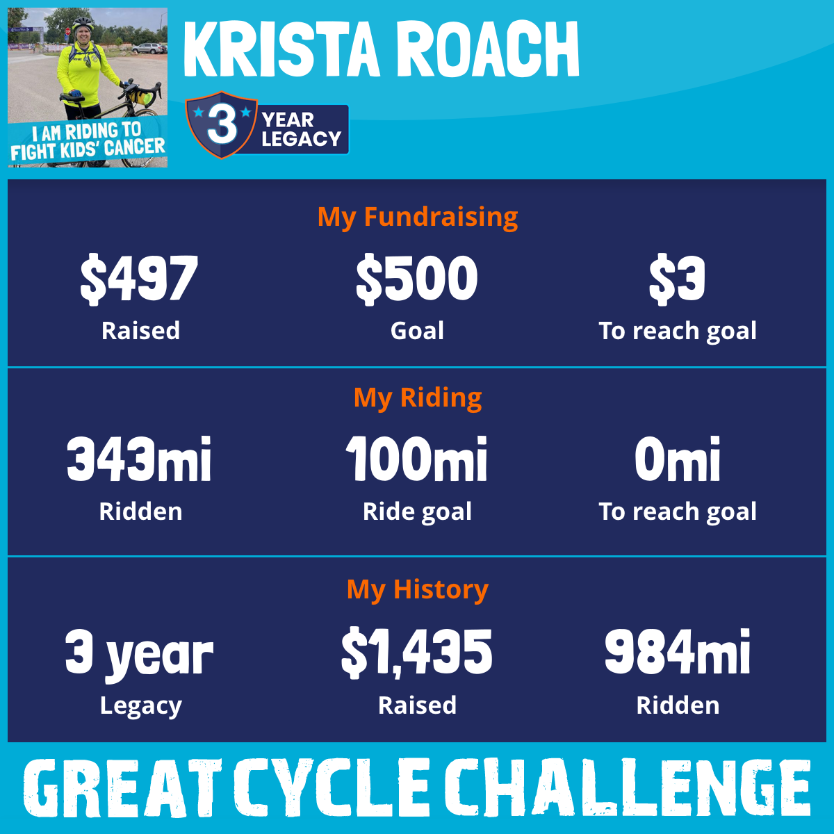 I am riding 100 mi to fight kids' cancer and save little lives. Please sponsor me to support my challenge!
