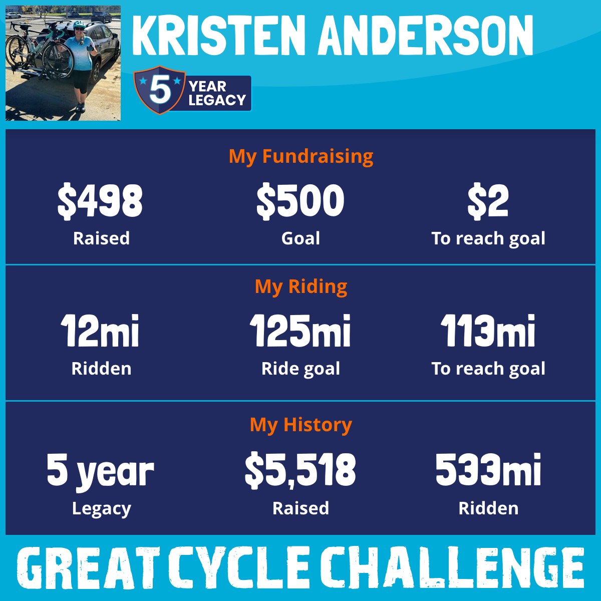 So I am raising funds through my challenge to help these kids and support Children's Cancer Research Fund to allow them to continue their work to develop lifesaving treatments and find a cure for childhood cancer.