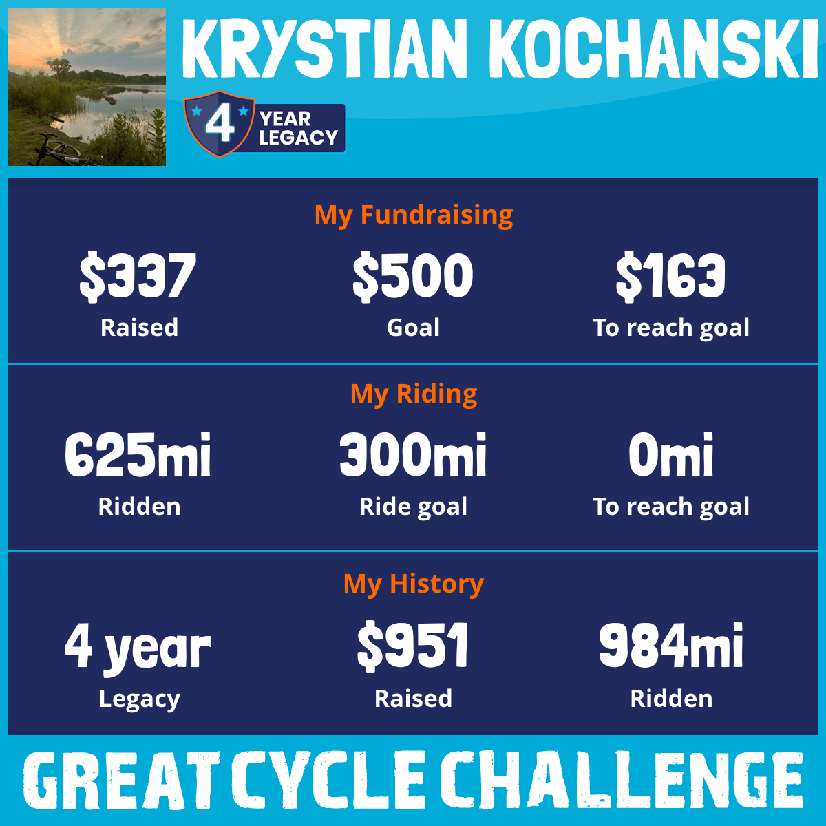 I am riding 400 mi to fight kids' cancer and save little lives. Please sponsor me to support my challenge!
