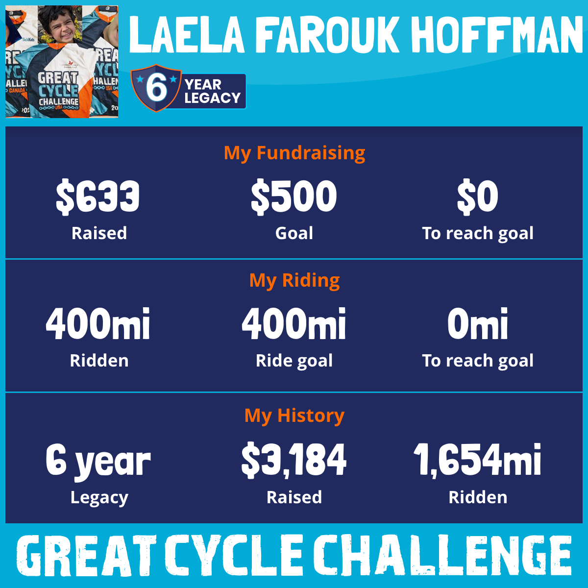 I am riding 400 mi for Hoffman's. Please sponsor me and support my challenge to fight kids' cancer and save little lives.