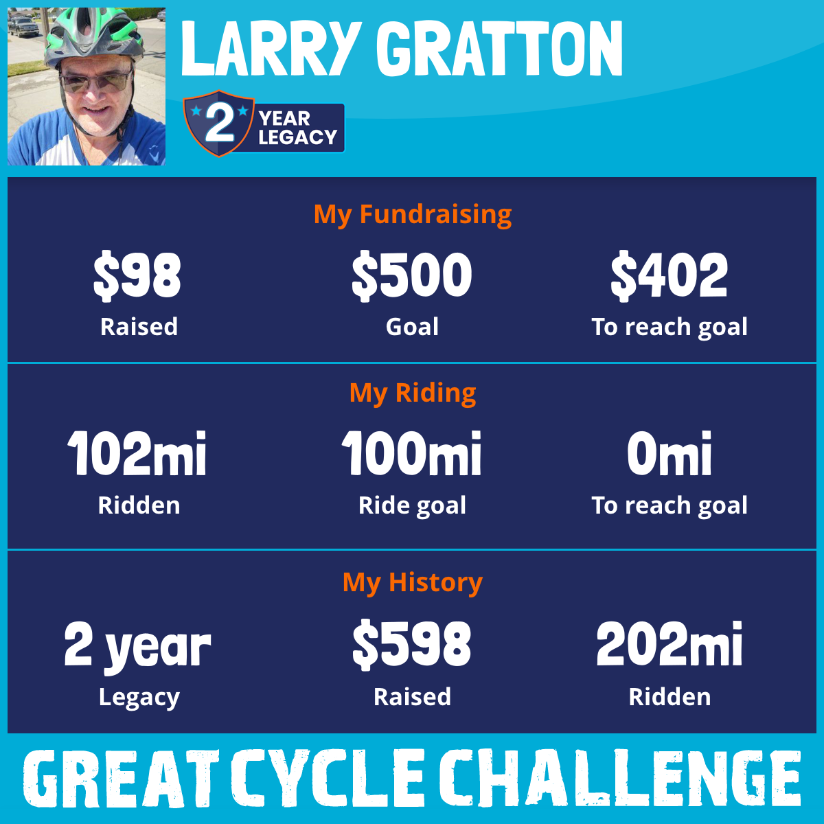 I am riding 100 mi for my friend, Carolyn and others. Please sponsor me and support my challenge to fight kids' cancer and save little lives.