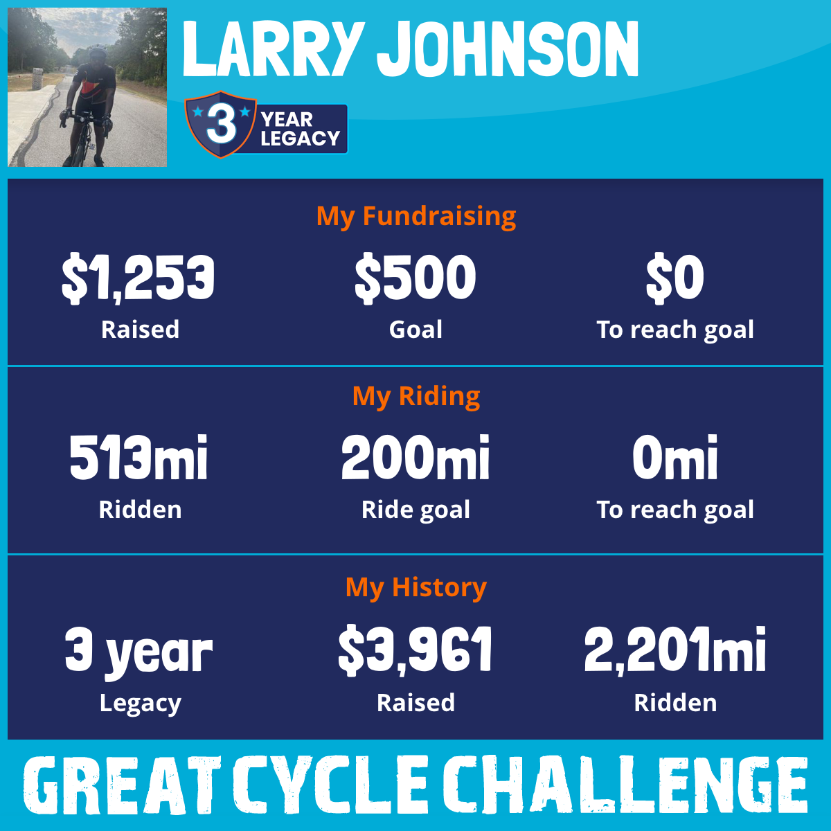 513 mi Ridden$1,253 Raised2025