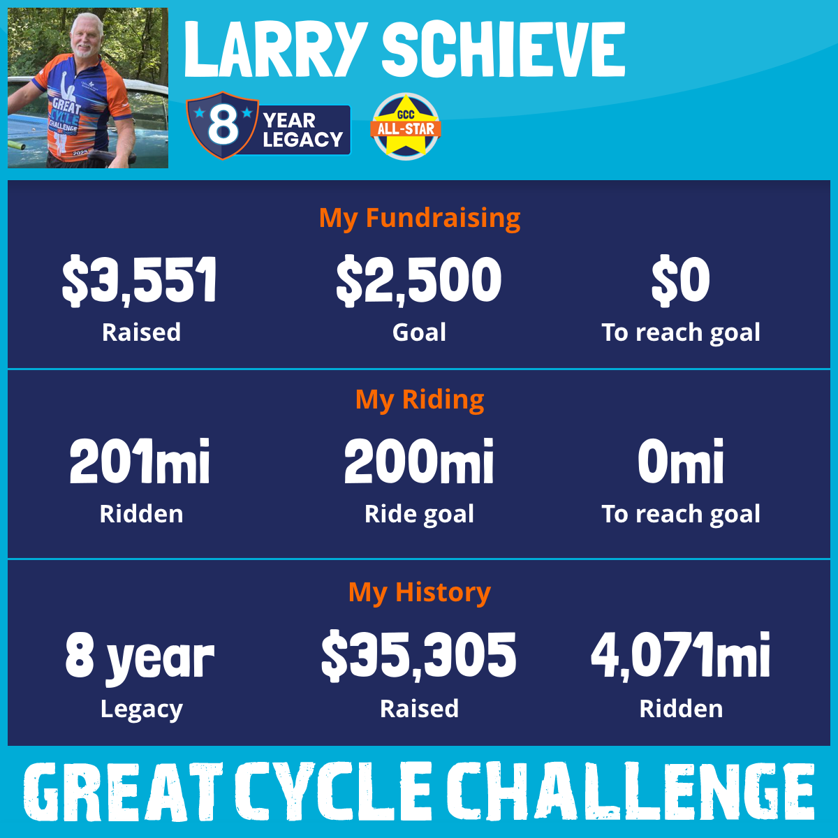 Why do I ride. Maddie Schieve was diagnosed with Ewing Sarcoma at 8 years old. After battling through all of the treatments, this now 18 year old young lady just completed her 9th year of being cancer free. The Great Cycle Challenge raises money for research so these miracles can happen. Please help support children like Maddie with a donation today. She is an inspiration to all that know her.