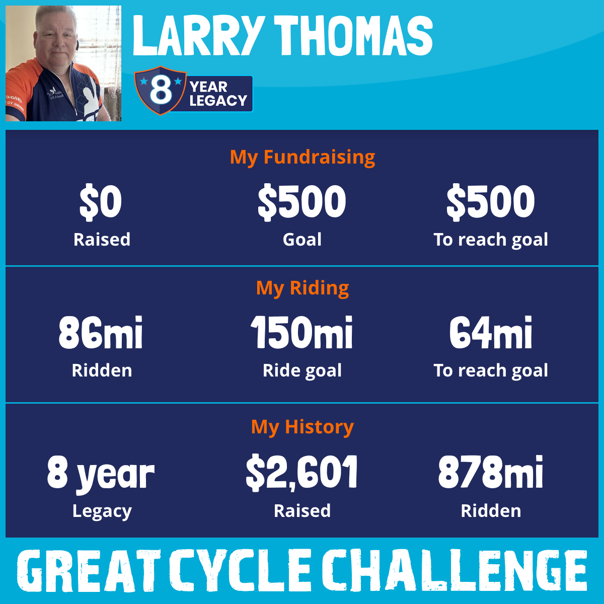 I am riding 150 mi in memory of Diane. Please sponsor me and support my challenge to fight kids' cancer and save little lives.