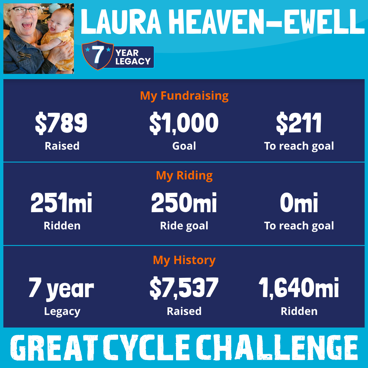 I am riding 250 mi for my dad, Ralph Heaven. Please sponsor me and support my challenge to fight kids' cancer and save little lives.
