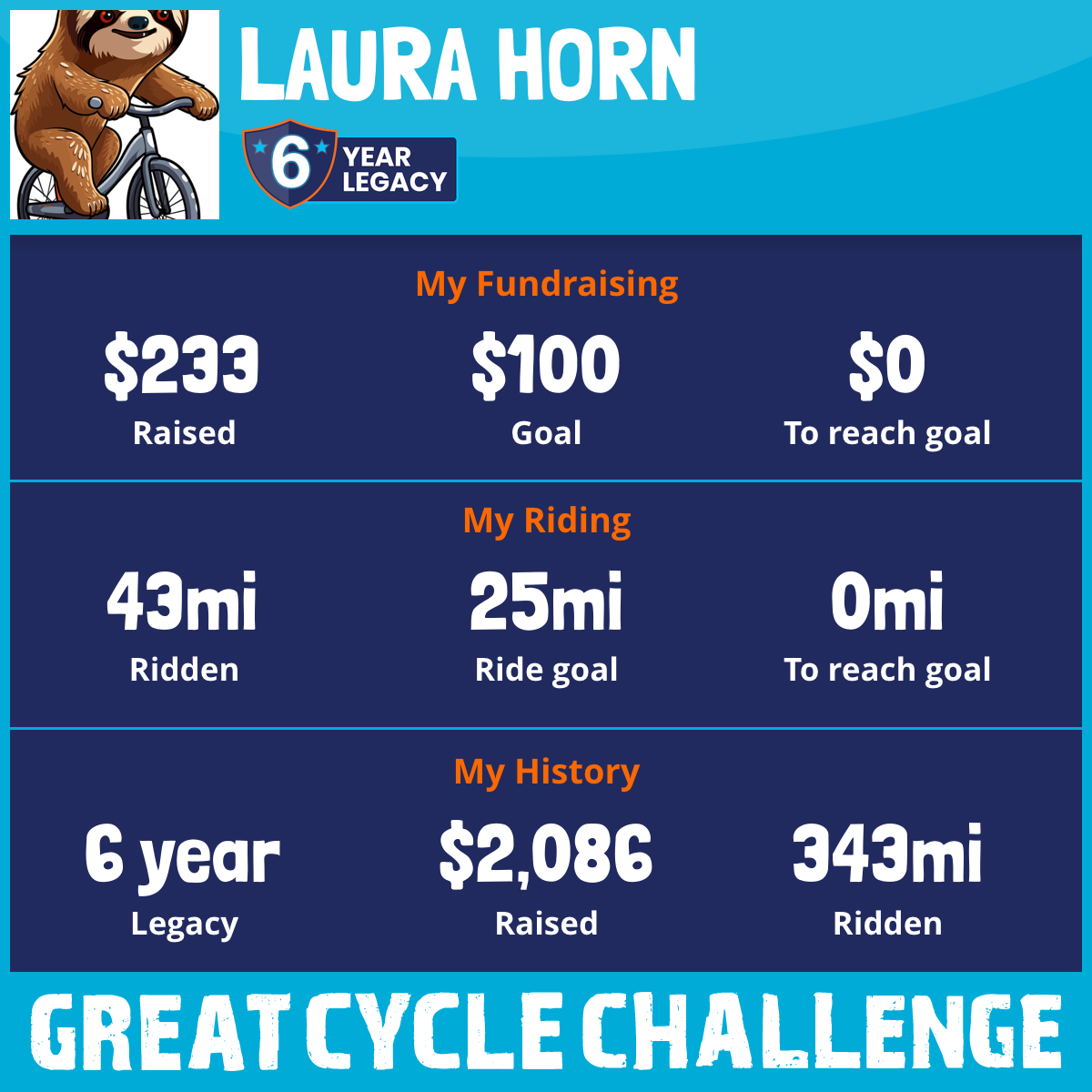 43 mi Ridden$233 Raised2025