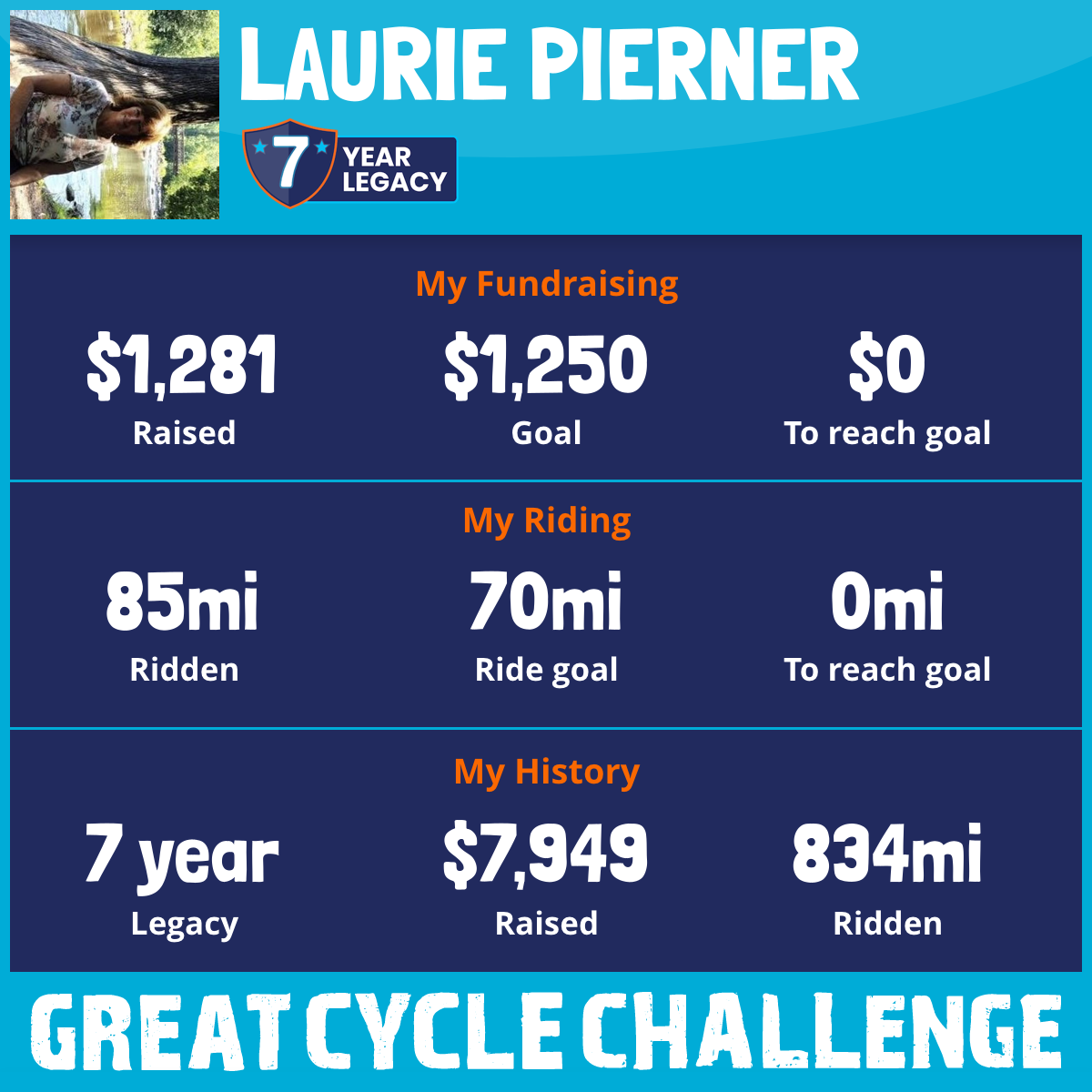 85 mi Ridden$1,281 Raised2025