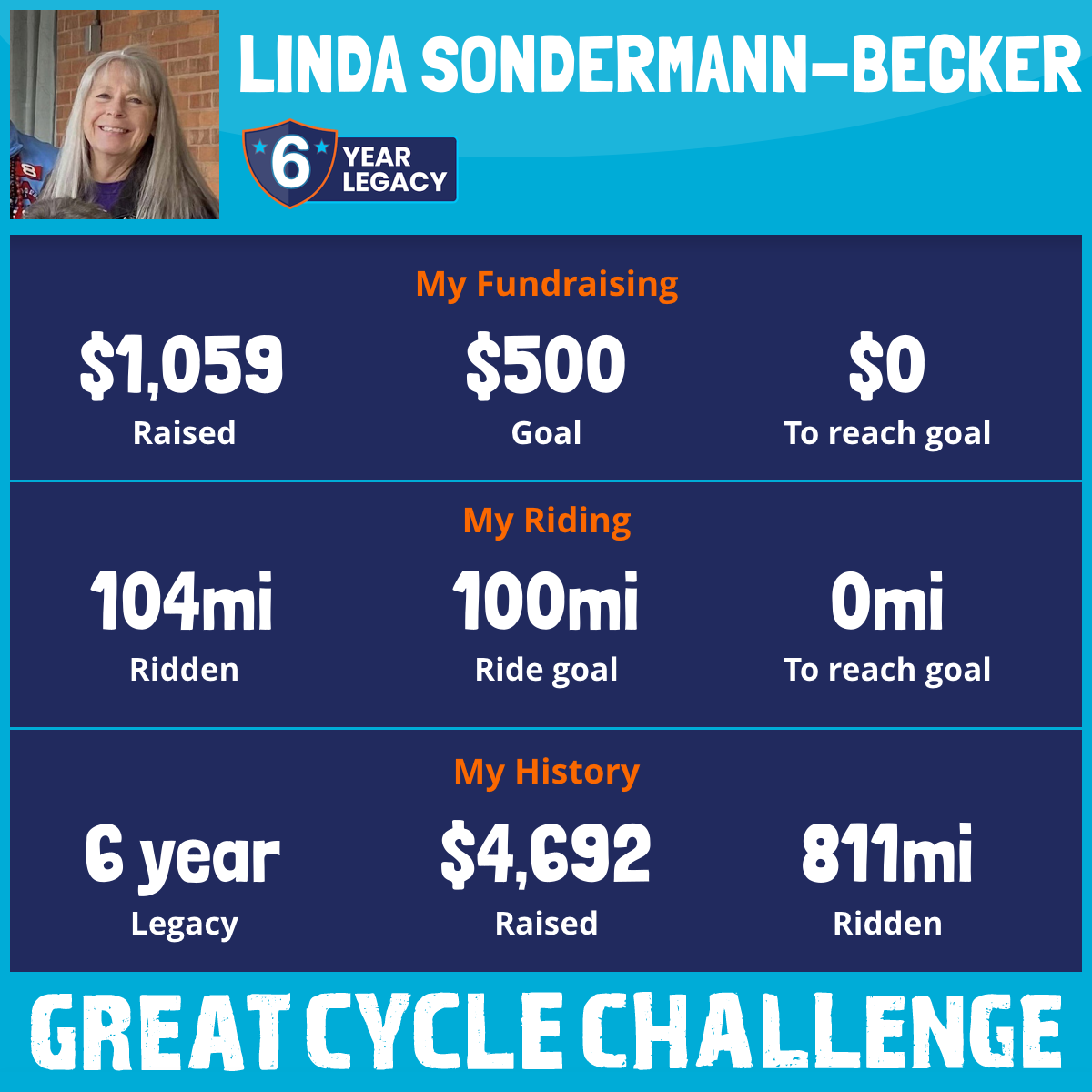 104 mi Ridden$1,059 Raised2025