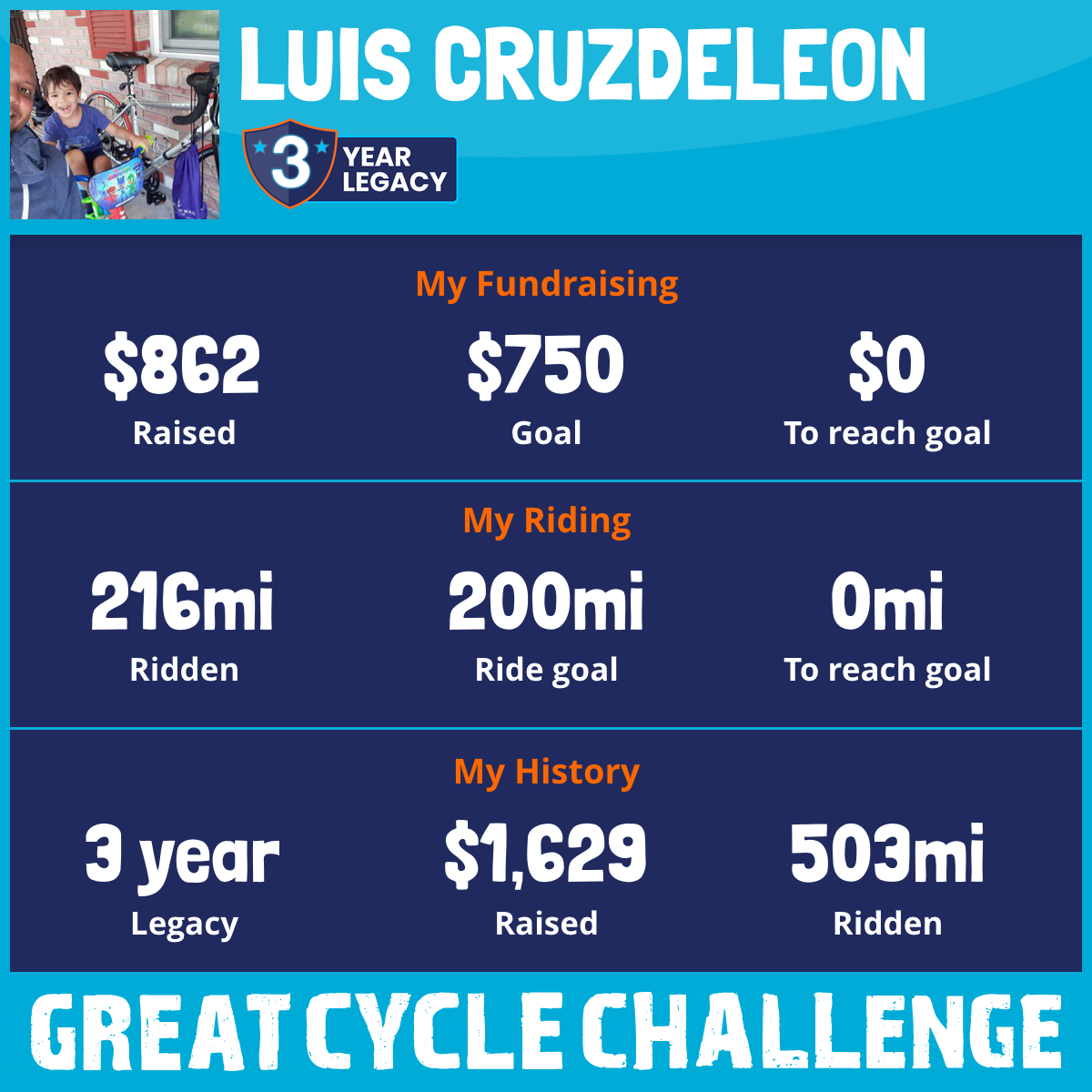 I am riding 200 mi in memory of Rafael Rivera & Hector Cruz. Please sponsor me and support my challenge to fight kids' cancer and save little lives.