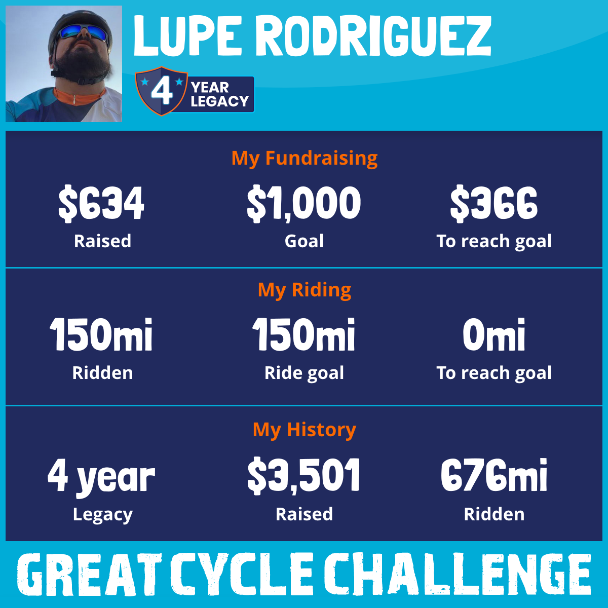 150 mi Ridden$634 Raised2025
