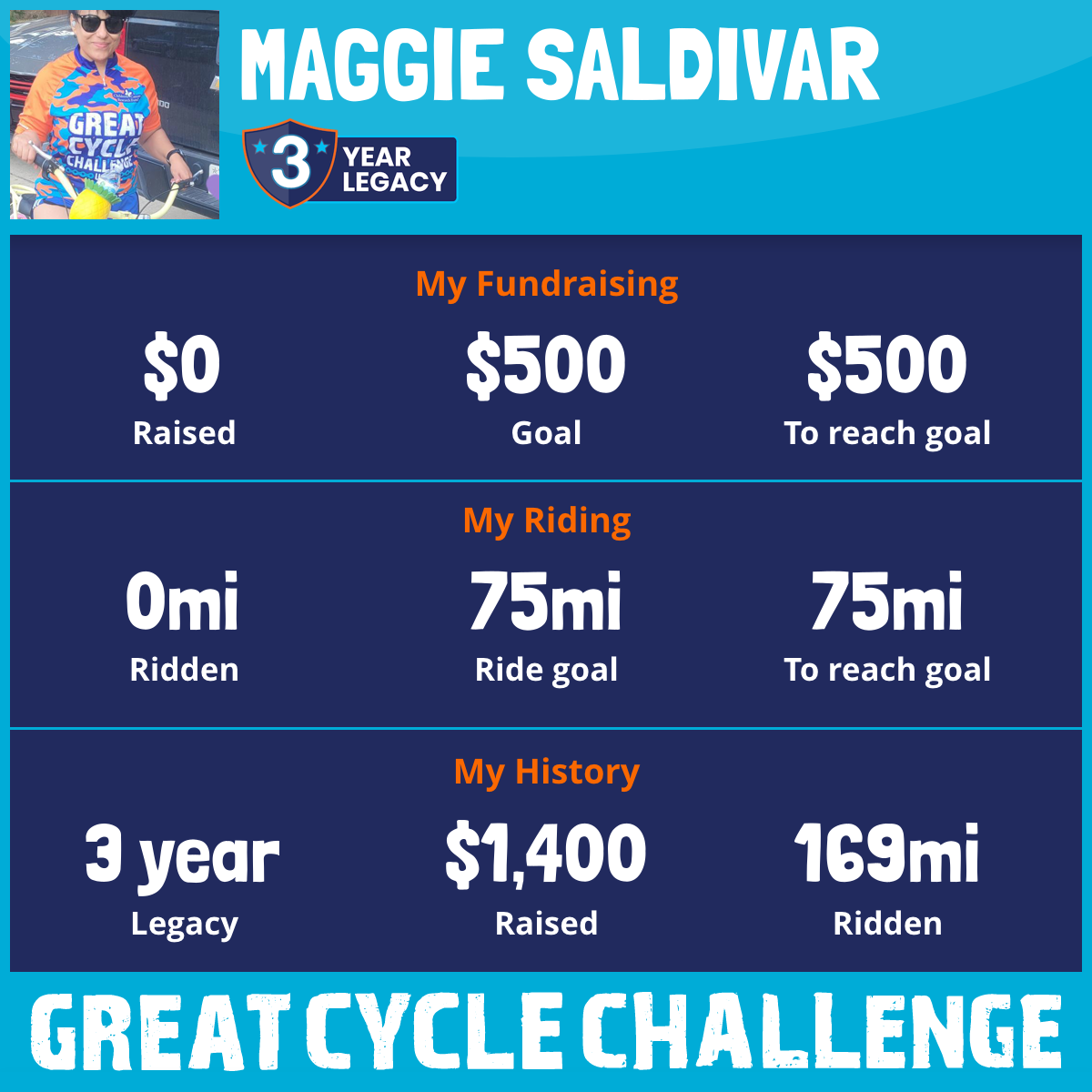 I've raised $0 My goal is $500 Donate Now
