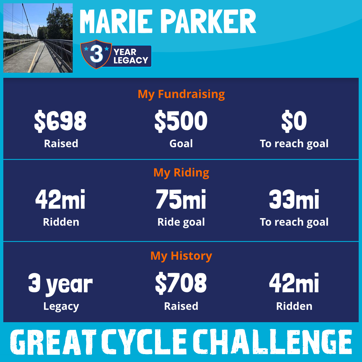 42 mi Ridden$698 Raised2025