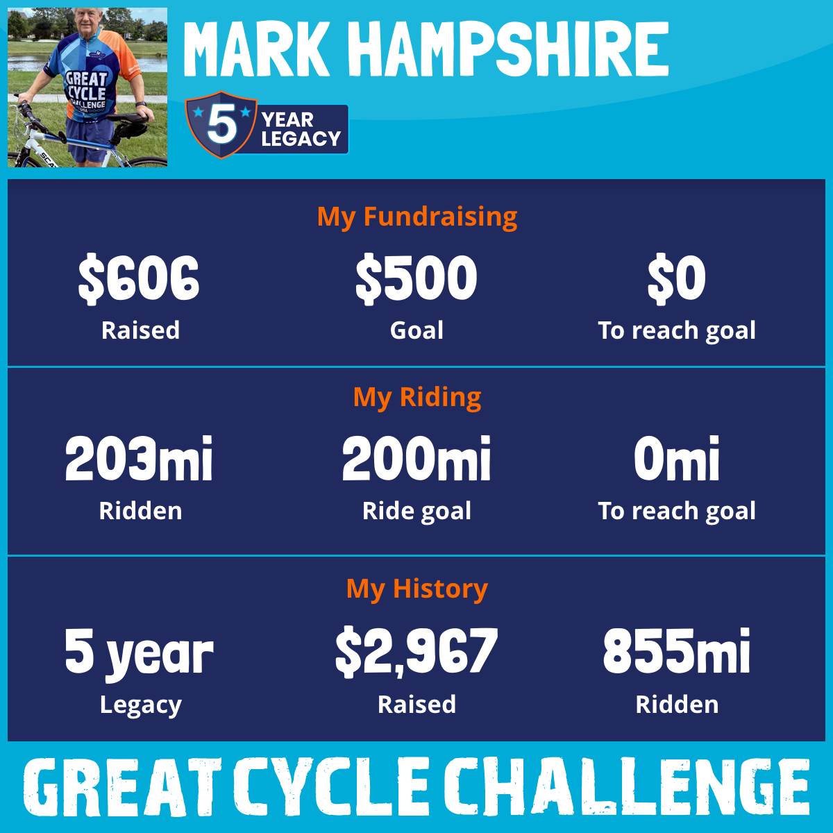 11 Sep 2025We have been blessed this month in Central Ohio with very nice weather for cycling. I’m currently ahead of schedule for meeting my mileage goal and have been fortunate to receive donations that surpass my goal in that area. Thank you again to all that have supported me this year…it’s hard to express my gratitude.