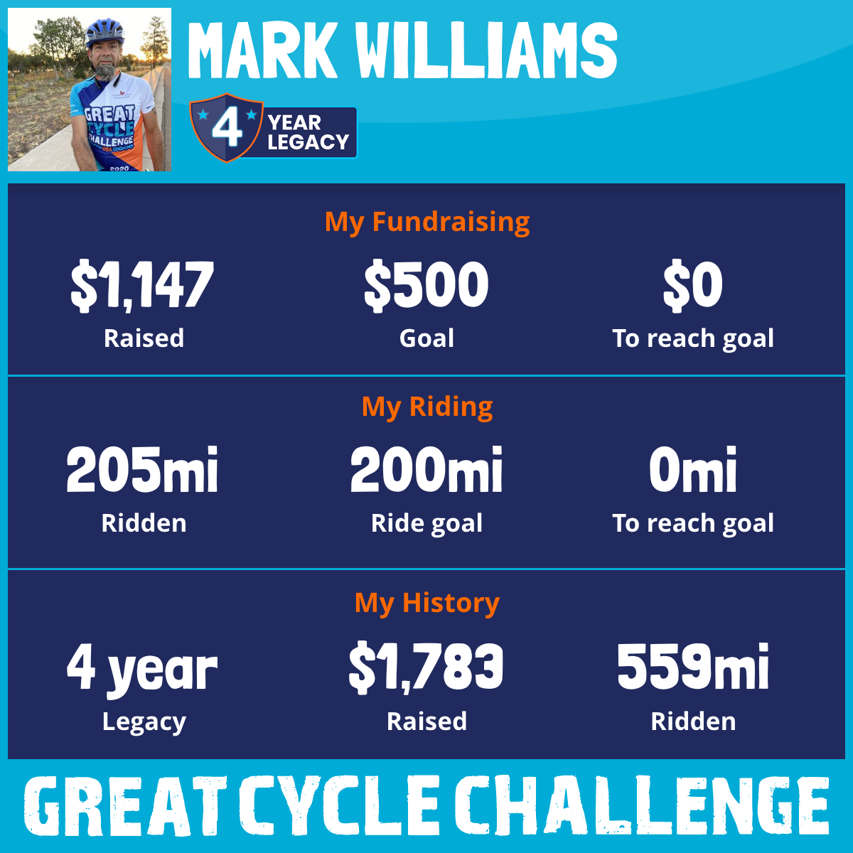 This September, I am taking part in the Great Cycle Challenge to fight kids' cancer! As a survivor of a rare cancer that typically only affects adolescents, Osteosarcoma, even more rare because of my diagnosis at the age of 55, I completely understand the suffering associated with one of the most deadly cancers out there. I experienced the pain and underwent treatment alongside teens with this brutal disease. I have experienced and seen firsthand and still have a hard time thinking about kids suffering from cancer!
