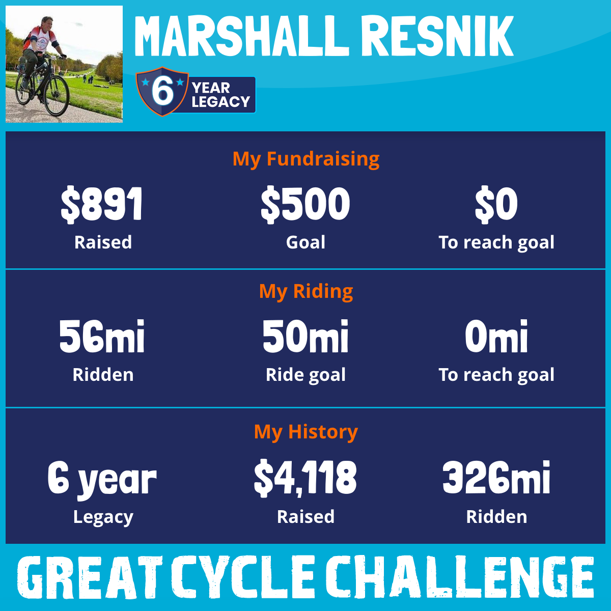 In April 2020, I lost my friend of 37 years, Kevin Golding, to cancer and I am dedicating this ride to his memory. I'm also riding this year for my wife's Mom, Dorothy Obal. She passed away in 2023 from cancer.