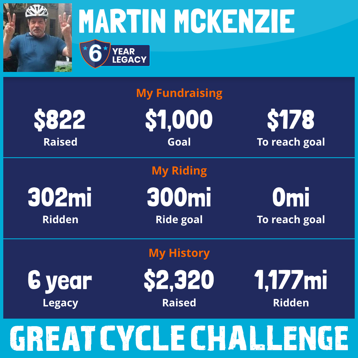 This September (2025) will be my 6th year where I am again taking part in the Great Cycle Challenge to fight kids' cancer!