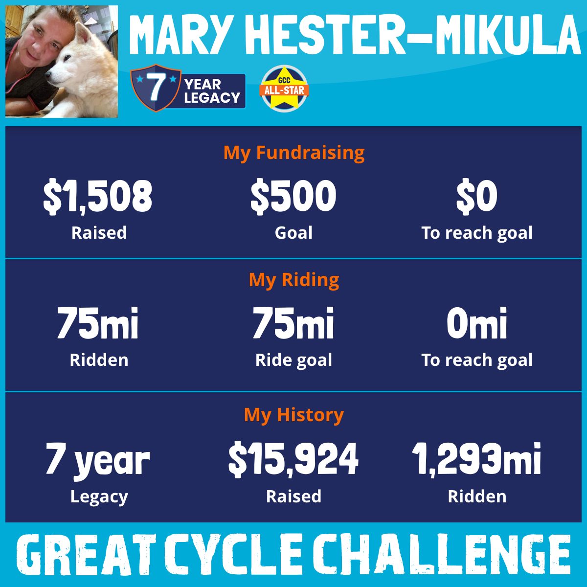 I've raised $0 My goal is $500 Donate Now