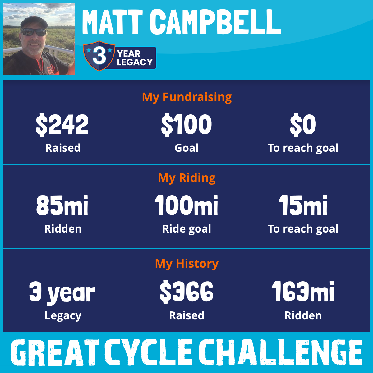 I'm riding my bike to bring awareness to kids cancer. Please sponsor me and support my challenge to fight kids' cancer and save little lives.