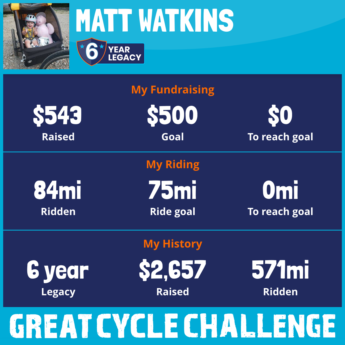 I am riding 75 mi for Phyllis. Please sponsor me and support my challenge to fight kids' cancer and save little lives.