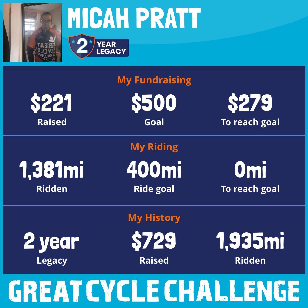 1,381 mi Ridden$221 Raised2025