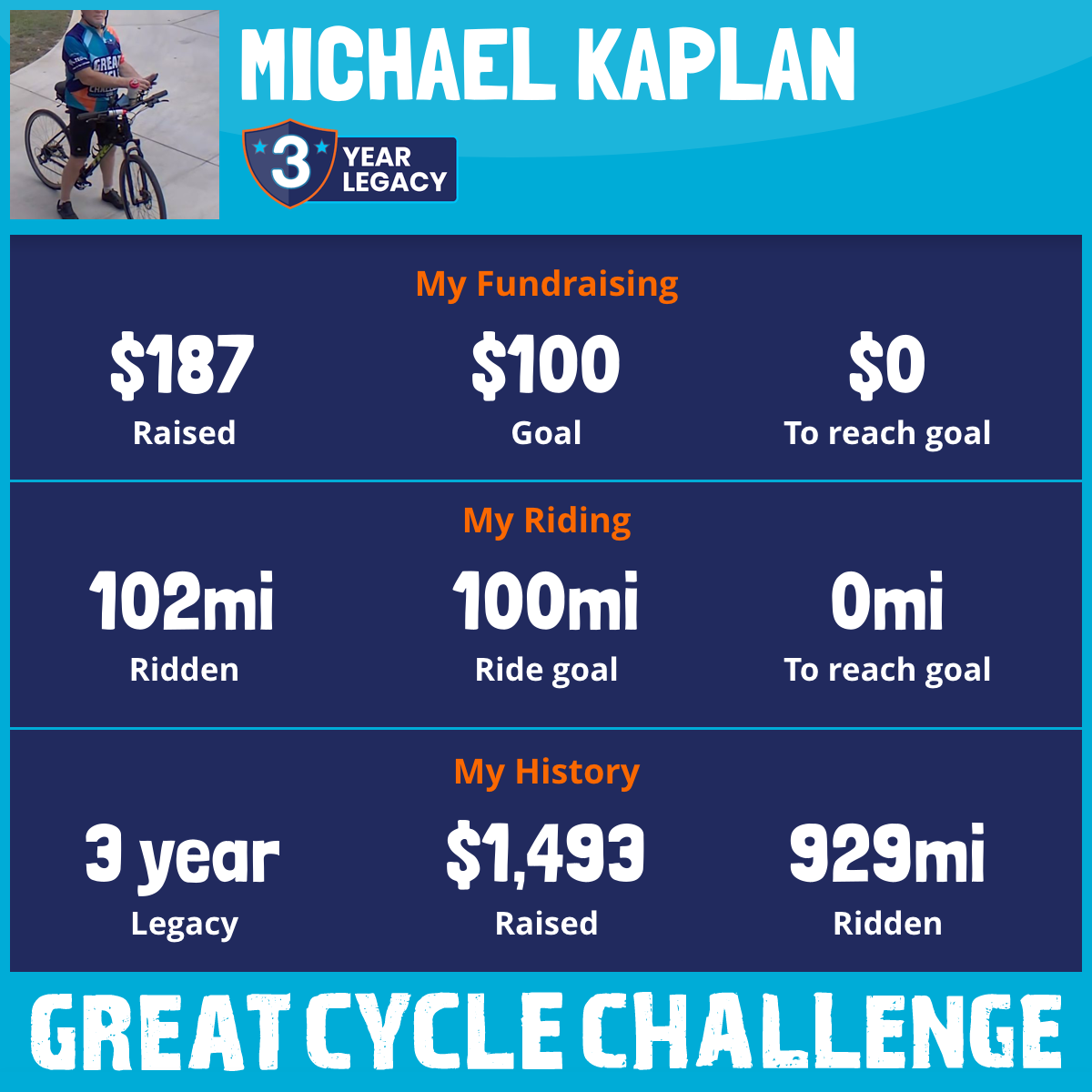 Last time I did this was in 2022, when I rode over 500 miles for the month of September raising money for the kids. I rode 3,233 miles that year, 127 rides (2022). 2023 and 2024 SUCKED for riding because of my Melanoma (Stage FOUR) Cancer--the drugs kicked my ass. I'm riding again this year, nowhere near that 2022 total but I'm on the bike, that's what counts. Wanted to ride 200 miles for this fight, this month, but downgraded it to 100 miles. I have one 10 miler left, on the 30th, to get to the 100 miles and my $100 goal. I'm not asking for support this year! Just doing it because it needs to be done! I'd love to ride (1 ride) my age this December, I'll be 64. I don't know if I can pull that off, but I'll try. I did it in 2022. GET YOUR SKIN CHECKED AND STOP SCREWING AROUND AND PUTTING IT OFF. My MELANOMA (SKIN CANCER!!!) was at Stage 3C when discovered! Had spread to lymph nodes! The earlier discovery the BETTER. GET IT DONE!!!! And get your dang COLONOSCOPY DONE! It kills both Men & Women! Peace out!