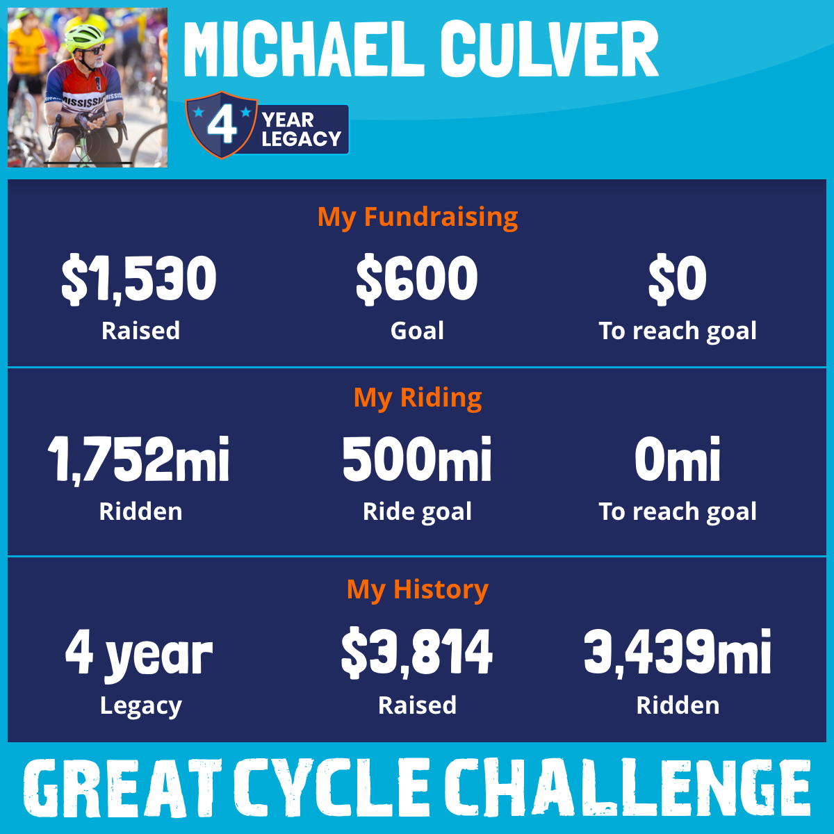 2,526 mi Ridden$1,530 Raised2025