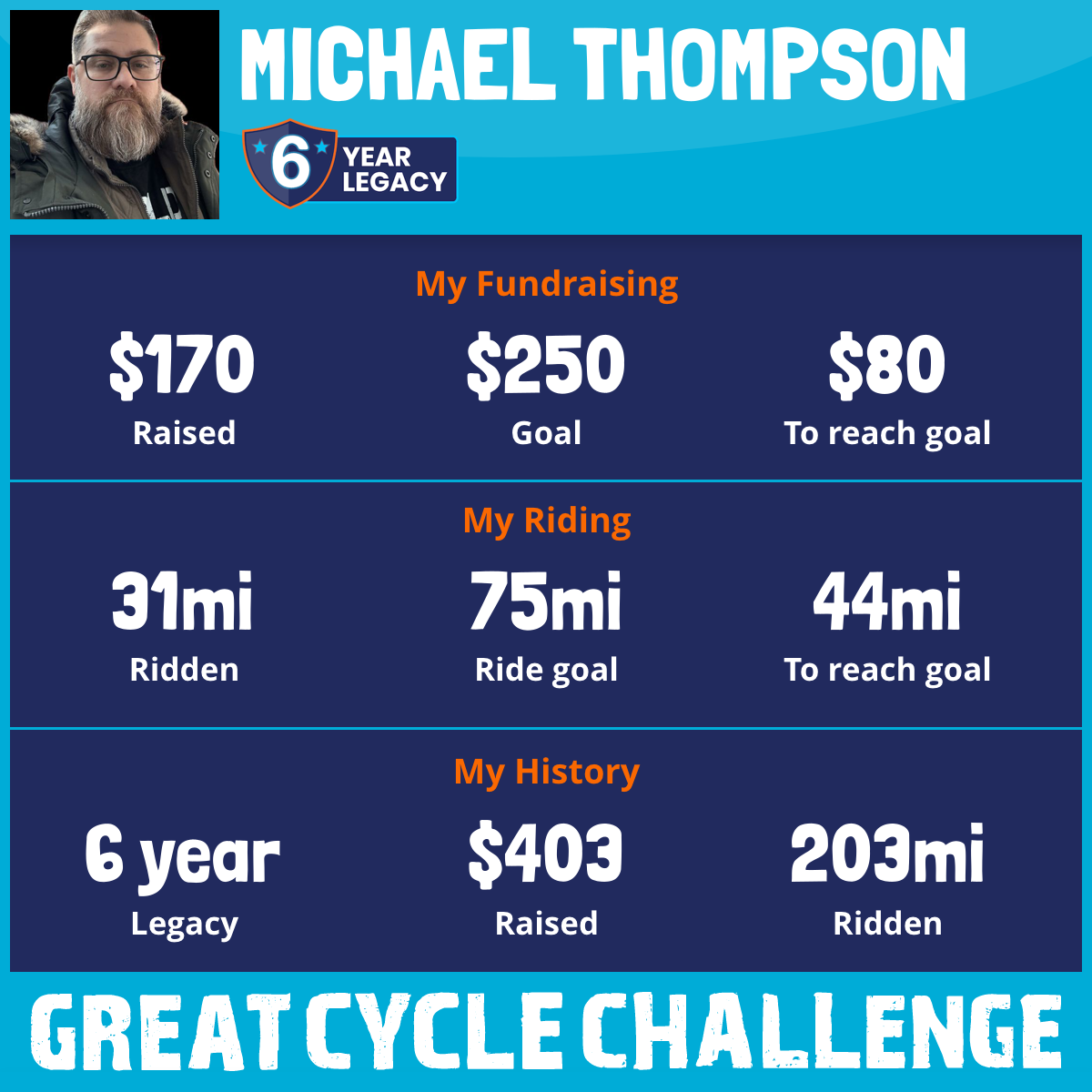 31 mi Ridden$170 Raised2025