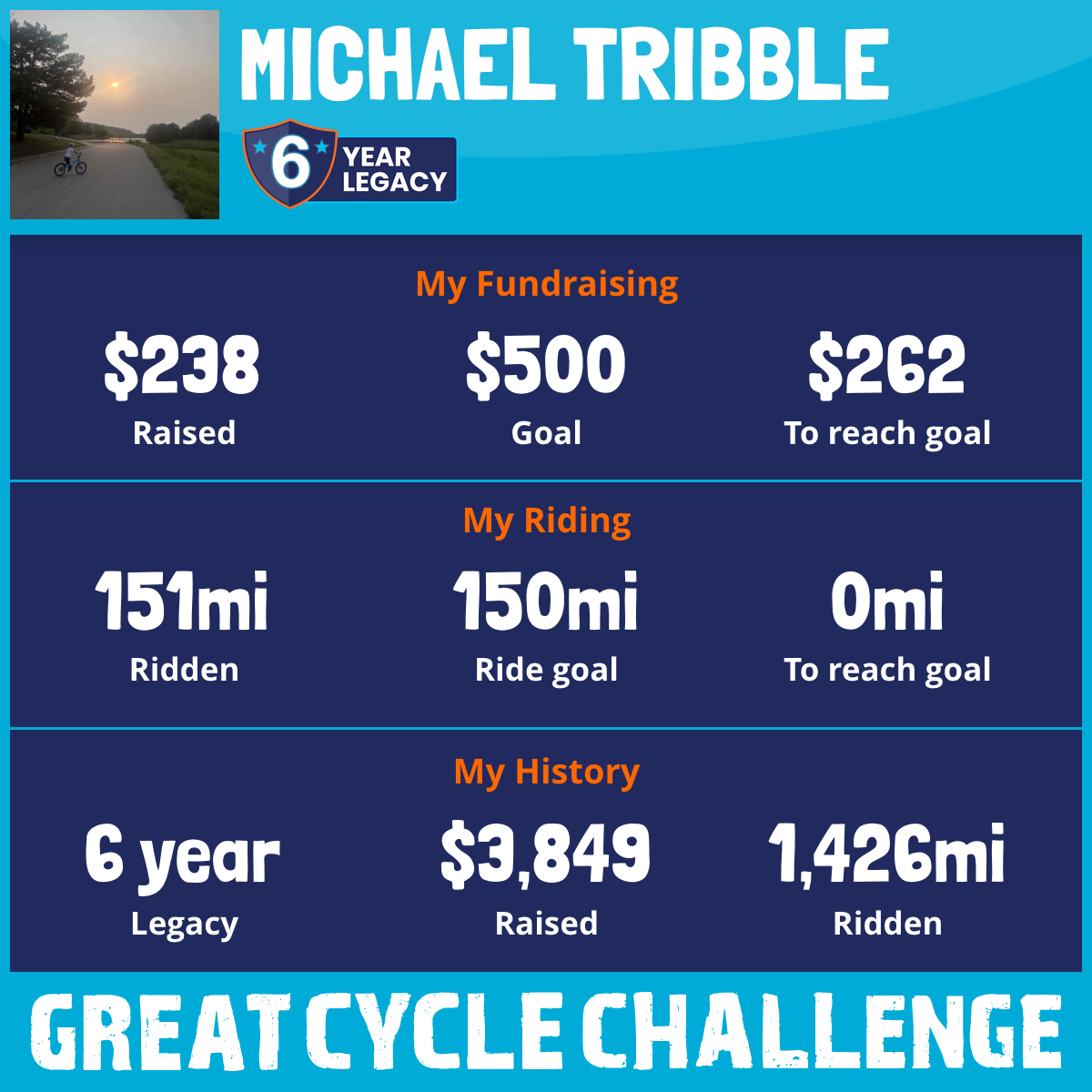 3 Oct 2025Well, it took two extra days due to work, and other stress related obstacles that tried to put me down, but we did it!! 151 miles! Malix finished out the last ten with me.. Good news is that the platform will actually keep running throughout the month of October and I’m going to be riding even more miles for the Big Bam on the Katy trail as I move on to accomplish my next goal to ride across the state of Missouri. This was a goal I made as a New Year’s resolution back in January and I intend to keep the goals and promises I make to myself as I continue to take on these challenges, I will keep the page open, pledge more miles, and continue to try to raise funds for this great cause… I will also be documenting the entirety of the ride on Tik Toc and facebook for the fun of it.. I want to thank everyone of you that have been here to support me, helped raise money, or even took time just to familiarize yourself with the cause but couldn’t donate yet.. Knowledge is power friends and if you do scrape up a few dollars and just don’t like me, you can donate straight to the page or another rider.. 🤓😉
