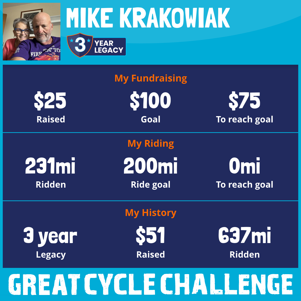 231 mi Ridden$25 Raised2025