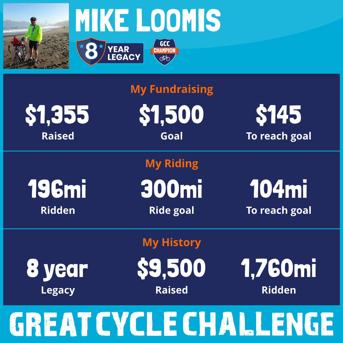 196 mi Ridden$1,355 Raised2025