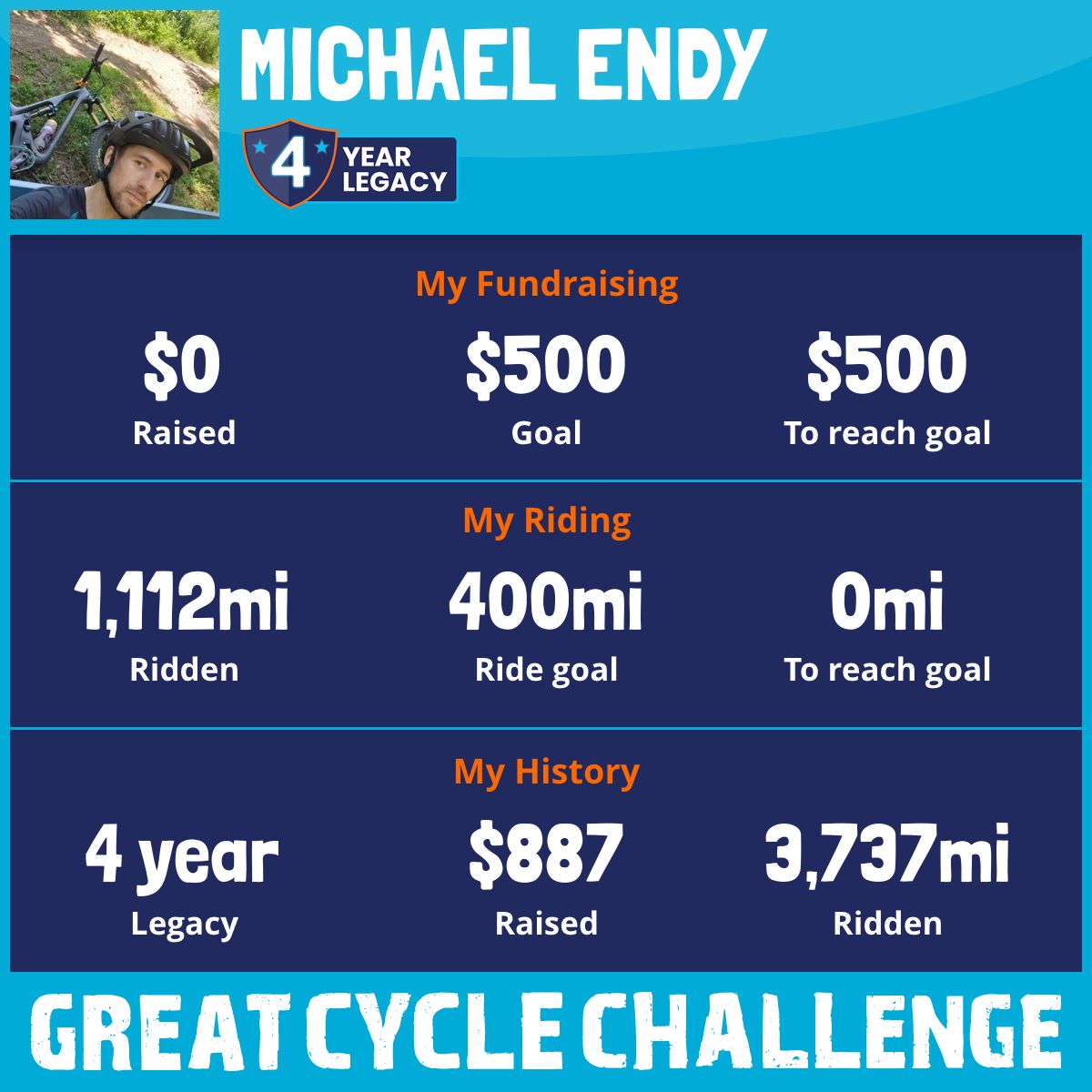I am riding 400 mi to fight kids' cancer and save little lives. Please sponsor me to support my challenge!