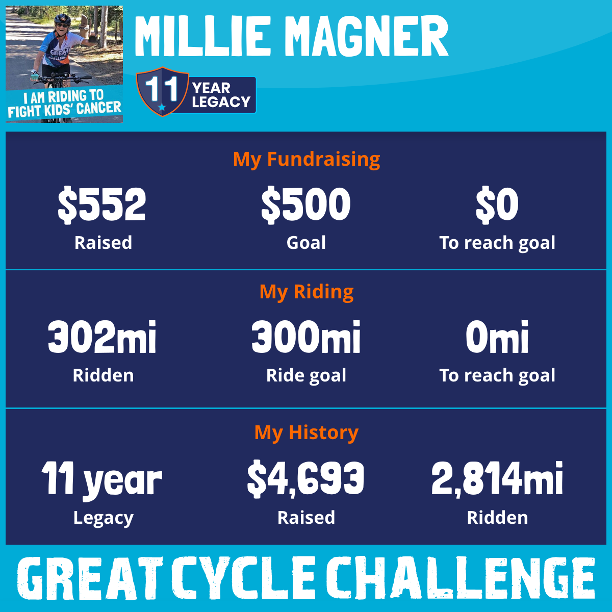 So I am raising funds through my challenge to help these kids and support Children's Cancer Research Fund to allow them to continue their work to develop lifesaving treatments and find a cure for childhood cancer. Donations are accepted now, however, we'll be riding the 2023 Great Cycle Challenge in September, during Childhood Cancer Awareness Month.
