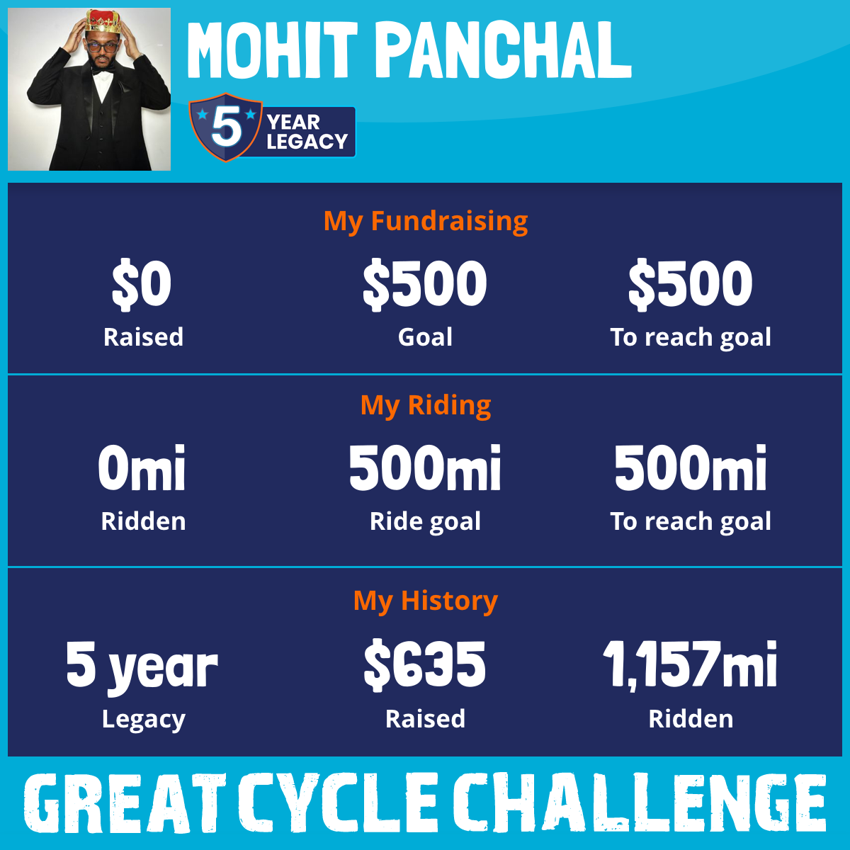 I am riding 500 mi for Shiv. Please sponsor me and support my challenge to fight kids' cancer and save little lives.