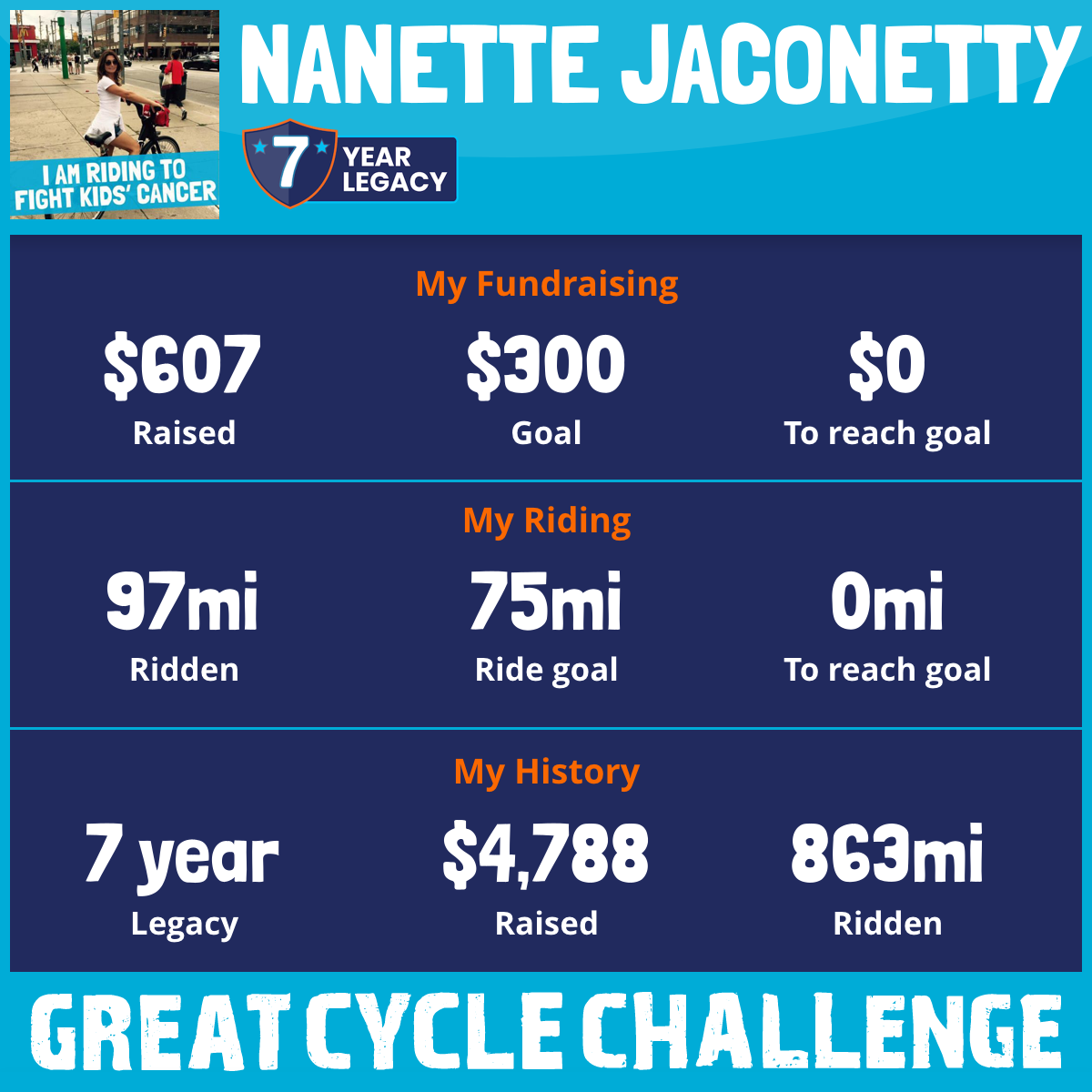 This September, my birthday month I want to do more and I’m taking part for the 7th year in the Great Cycle Challenge to fight kids' cancer!