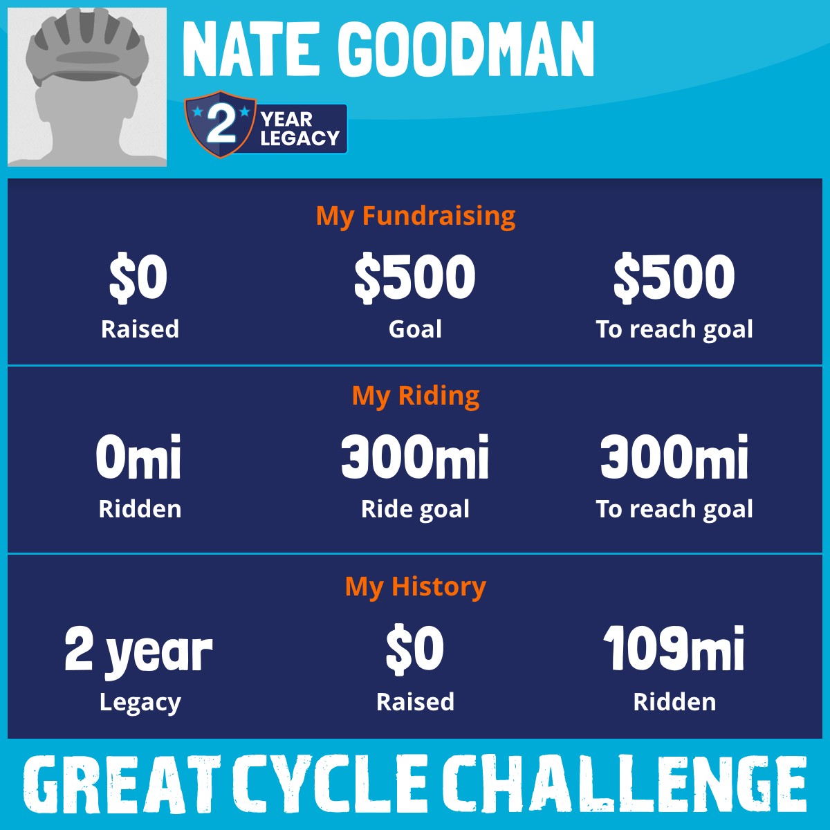 I've raised $0 My goal is $500 Donate Now