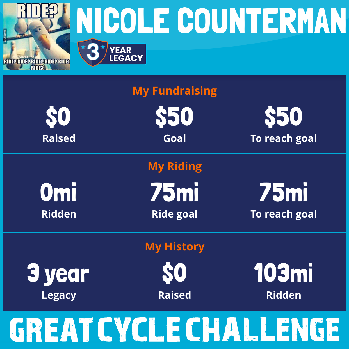 I am riding 75 mi to fight kids' cancer and save little lives. Please sponsor me to support my challenge!