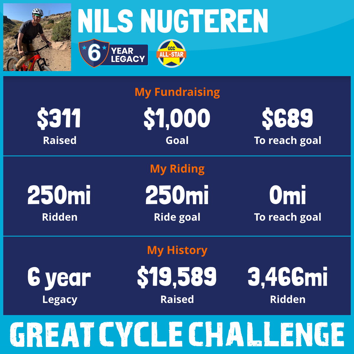 This is my 5th year participating in the Great Cycle Challenge to join the fight against cancer. The first time, in 2020, i joined in support of my brother Tony, who was diagnosed with skin cancer. In 2021 he passed away and now I ride in his memory.