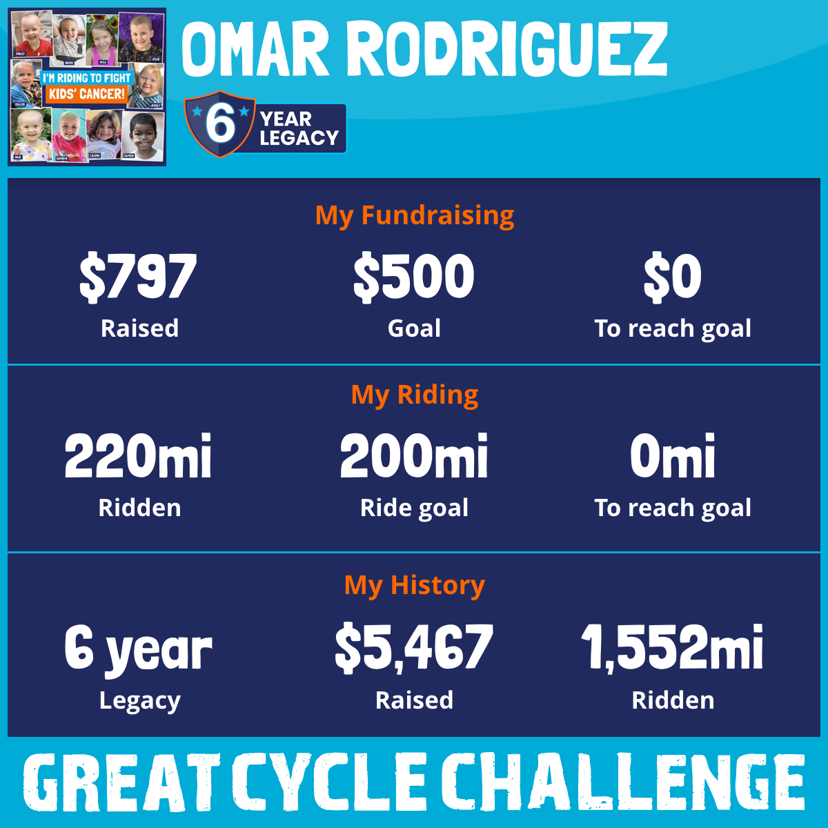 I just raised $500 to fight kids' cancer and achieved GUARDIAN LEVEL in the challenge! Thank you so much for your support.