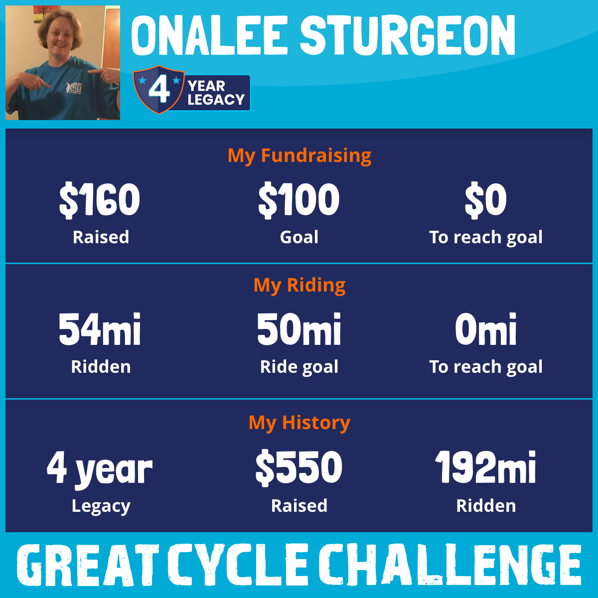 I am riding 50 mi for all of the children fighting for their lives. Please sponsor me and support my challenge to fight kids' cancer and save little lives.
