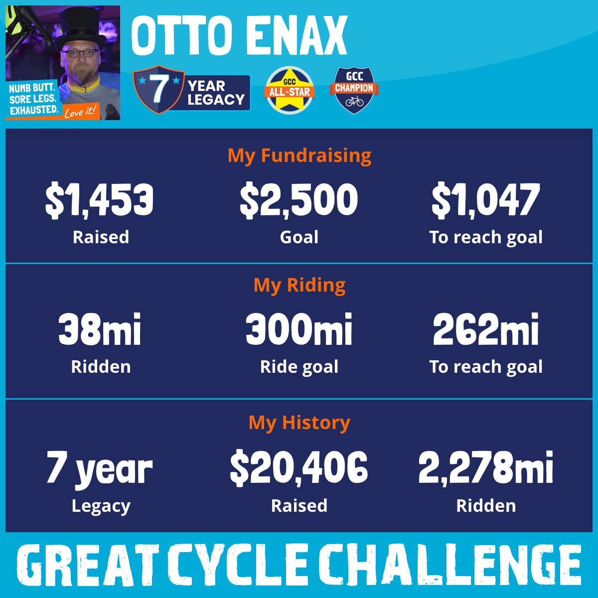 I am taking part in the Great Cycle Challenge to fight kids' cancer this will be the 5th year!