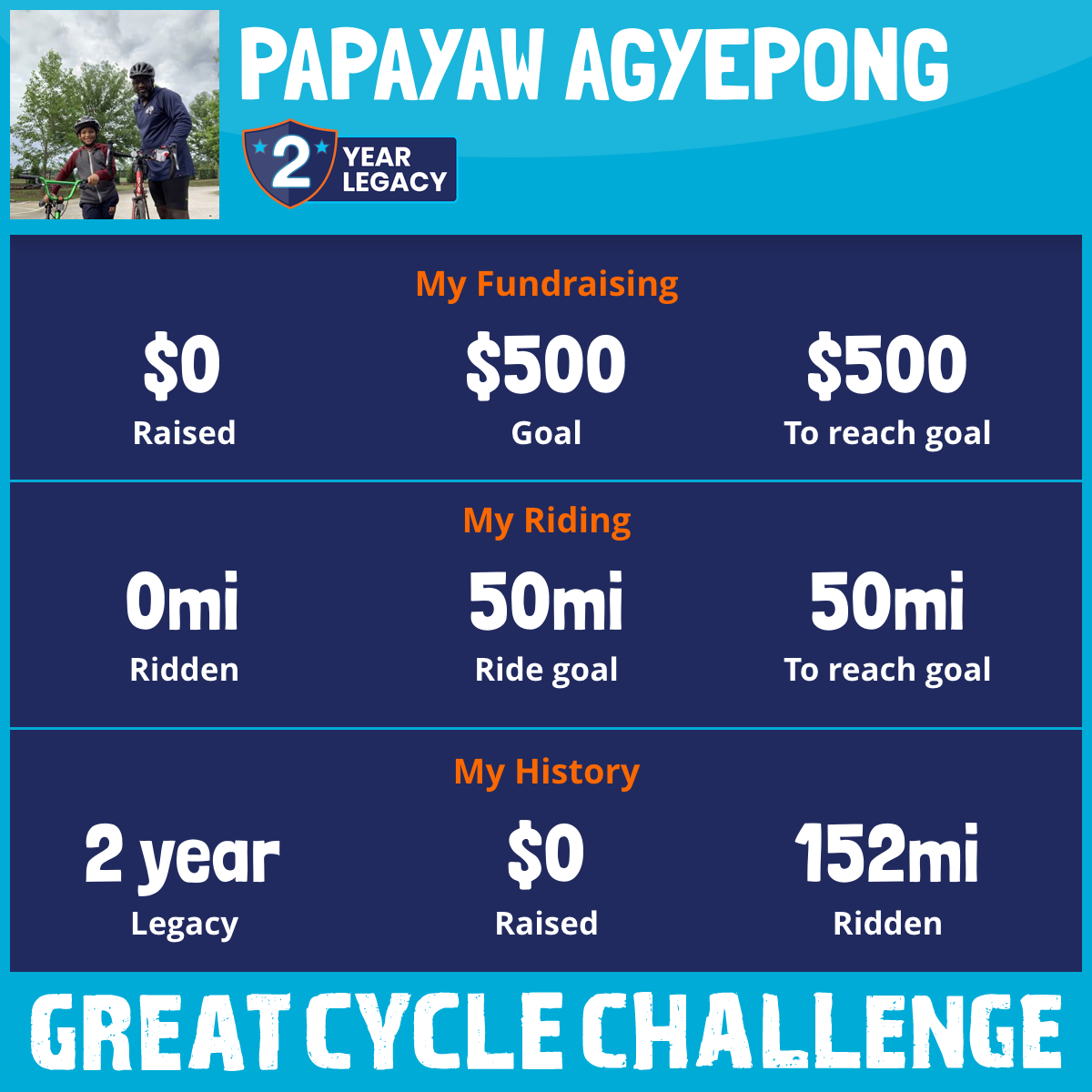 I've raised $0 My goal is $500 Donate Now